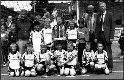 Zum 11. Mal kämpften acht Mannschaften der sieben Grundschulen der Gemeinde Finnentrop um den Titel des Gemeindemeisters im Fußball auf dem Bamenohler Sportplatz. Insgesamt ging es wie in den vergangenen Jahren um den Wanderpokal der Volksbank Finnentrop und um die Berechtigung, die Gemeinde Finnentrop bei der Kreismeisterschaft am l. Juli in Hünsborn zu vertreten. Nicht nur spannende Spiele, auch die Bewirtung durch die Mitglieder des Fördervereins in Form von Waffeln, Bratwürstchen und kalten Getränken sorgte bei den fast 300 Kindern für gute Stimmung. In den beiden Gruppen dominierten die Mannschaften aus Bamenohl und Heggen, die ihre drei Gruppenspiele deutlich gewannen. Während Bamenohl auch das Halbfinale gegen Rönkhausen hoch für sich entscheiden konnte, musste sich Heggen gegen Finnentrop geschlagen geben. Im Spiel um den 3. Platz sorgten die Heggener wieder für klare Verhältnisse und erreichten diesen Rang ungefährdet. In dem spannenden Endspiel siegte Bamenohl gegen Finnentrop dann knapp mit 1:0. Zufriedene Gesichter gab es bei der Siegerehrung, zu der Bürgermeister Heß und Schulamtsleiter Ulrich Hilleke Freikarten für das Finto-Bad aushändigten. |