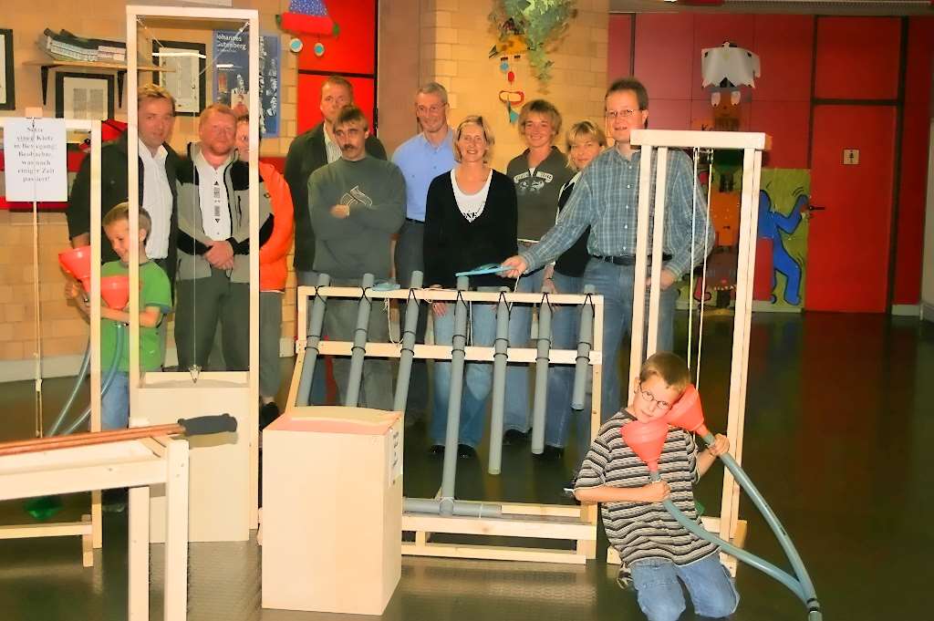 Vor einem Jahr war die Wanderausstellung "Miniphänomenta" der Uni Flensburg für zwei Wochen in der Gutenberg-Grundschule in Finnentrop. An über 20 Stationen sollte bei den Kindern Interesse für physikalische Phänomene geweckt werden, was gelang. Die Begeisterung der Kinder steckte ihre Eltern so sehr an, dass diese spontan beschlossen, eine eigene Miniphänomenta zu bauen und der Schule dauerhaft zur Verfügung zu stellen. Beim Bau der einzelnen Stationen konnten die Eltern teilweise erstaunliche handwerkliche Fähigkeiten an sich entdecken. Stolz präsentierten sie daher ihre Werke. Inzwischen sind schon zwölf Stationen fertiggestellt, weitere sollen folgen. Schönster Lohn für die engagierten Eltern: Der Eifer, mit dem die Schulkinder experimentieren, und die Gewissheit, dass noch viele Schülerjahrgänge von ihrem Einsatz profitieren.