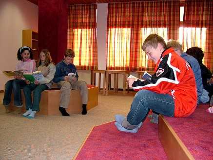 Diese Bilder sind natürlich gestellt. Also: "Tut nur so, als ob ihr lesen würdet!" Nach zehn Minuten ist die Fotosession zuende. Die Kinder aber haben sich inzwischen festgelesen.