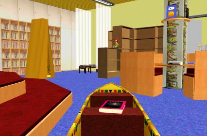 Hier der Regalbereich mit einem weißen Lesezelt im Hintergrund.
