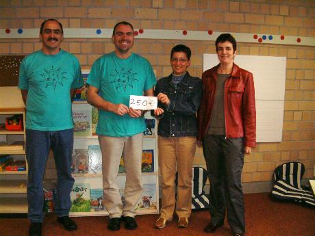 Vier T-Cl@ss - Rechner von T-Online gesponsortSeit Anfang März verfügt unsere Schule über vier T-Cl@ss - Rechner. Die Firma T-Online stellt uns die vier Rechner mit dem dazugehörigen Netzwerk und dem erforderlichen ISDN - Modem zur Verfügung. Die notwendigen Lizenzen für die Betriebssysteme erhielten wir kostenlos von der Firma Micorsoft. Die Firma Epson fügte noch einen hochwertigen Farbdrucker hinzu. Rechner und Netzwerk wurden fix und fertig vorinstalliert geliefert. Wenn Sie mehr über Rechner und deren Einsatz im Unterricht erfahren möchten, klicken Sie bitte hier. Online-Rätsel ade?Leider konnten im Januar und im Februar wegen Erkrankung und akuten Zeitmangels keine Online-Rätsel erstellt und veröffentlicht werden. Anfang März geht es mit dem nächsten Online-Rätsel weiter. Versprochen! - Inzwischen läuft unser Online-Rätsel wieder im Monatsabstand. Über unsere HomepageHier erhalten Sie Informationen über laufende und für die Zukunft geplanten Aktivitäten auf unserer Homepage. Ebenso sind hier unsere Zielsetzungen aufgeführt. Auch einige Angaben zur Statistik unserer Homepage werden hier veröffentlicht. Anregungen zur weiteren Gestaltung und zum Ausbau unserer Homepage nehmen wir gern als Email oder in anderer Form entgegen. Artsonia - education by artAls erste deutsche Schule präsentieren wir Bilder auf der internationalen Ausstellung "Artsonia". Seit dem 3. Oktober sind die ersten Bilder im Web veröffentlicht. Es ist außerordentlich reizvoll, Bilder von Kindern aus anderen Kulturkreisen zu sehen. Sicherlich können auch unsere Kinder hier nützliche Anregungen gewinnen. (Dazu auch Info 04) SchulhofgestaltungDie Rondelle unseres Schulhofes erhalten von den Kindern eine neue farbliche Gestaltung. SportfestDerzeit wird das Konzept unseres Sportfestes komplett überarbeitet. Online-Rätsel Ab jetzt auf der Kinderseite zu lösen.Ab 1. September 2000 wird monatlich auf unserer Homepage ein Online-Rätsel gestellt. Kinder - KarteUnsere Kinderkarte von der Schulumgebung werden wir am Schuljahrsanfang fertigstellen können. Dann soll unsere Karte nach Westen erweitert werden. Aktuelle TermineHier finden sie unsere ständig aktualisierte Terminliste. Letzte Änderungen sind in blauer Schrift wiedergegeben. Englisch in der GrundschuleAb dem Schuljahr 2003/04 soll in den dritten und vierten Klassen der Grundschule Englisch unterrichtet werden. Hier können Sie nähere Informationen nachlesen. Gutenberg - InfoHier finden Sie jeweils die neueste Ausgabe. Die nächste Ausgabe ist für Ende September geplant. Die Headlines können Sie bereits jetzt nachlesen.