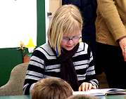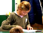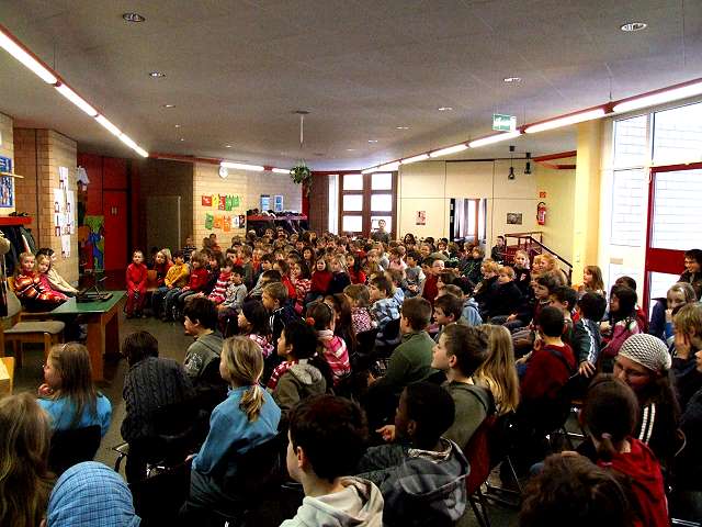 Hochkonzentriert lesen die Kinder der Jahrgänge 2, 3 und 4 dem aufmerksamen Plenum vor. Engagiert, aufmerksam und kritisch und natürlich auch mit Interesse an der "zauberhaften Geschichte" verfolgt die Jury den Lesewettbewerb. Auf dem Bild ist dem Fotografen leider ein Jury-Mitglied entwischt. Ja, und wo bleibt nun das Ergebnis? Fortsetzung folgt! |