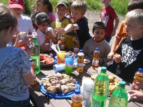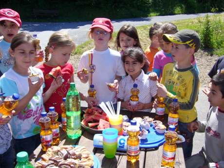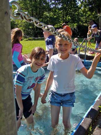 Wanderung zur KnochenmühleAm Montag, dem 23. Juni hat sich unsere Klasse am Eiskanal getroffen, um eine Klassenwanderung zu machen. Wir sind zur Knochenmühle nach Fretter gewandert. Dort haben wir die Enten gefüttert, eine kleine Pause gemacht und sind ins Tretbecken gegangen. Levin und Frau Kaulfuß haben ein Floß aus Stöcken und einem Verband gebaut. Danach haben wir uns das Wasserrad, das die Mühle antreibt, angesehen. Dann kam Herr Bösel und wir sind in die Knochenmühle reingegangen. Die Knochenmühle ist eigentlich gar keine Mühle sondern ein Stampfwerk. Wir durften Tierknochen ins Stampfwerk werfen. Auf dem Rückweg gab es am Spielplatz Wassermelone, Apfelschorle, Kuchen und Muffins. Es war alles sehr lecker. Am Eiskanal haben unsere Eltern uns am Mittag wieder abgeholt. Die Klassenwanderung hat uns Spaß gemacht. Leonie und Revsan