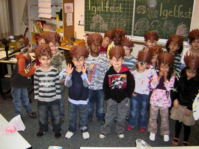 Kurz vor den Herbstferien luden die Kinder der Igelklasse 1a der Gutenberg Grundschule ihre Eltern nachmittags zu einem Igelfest ein.